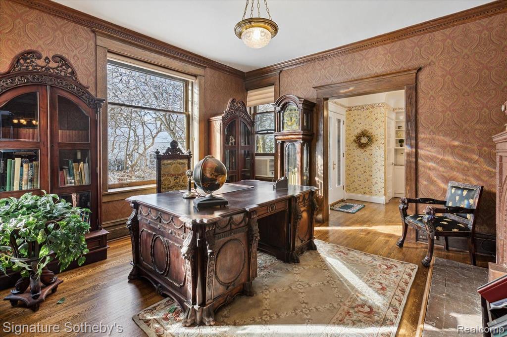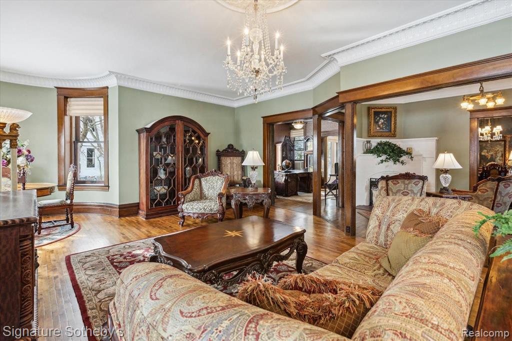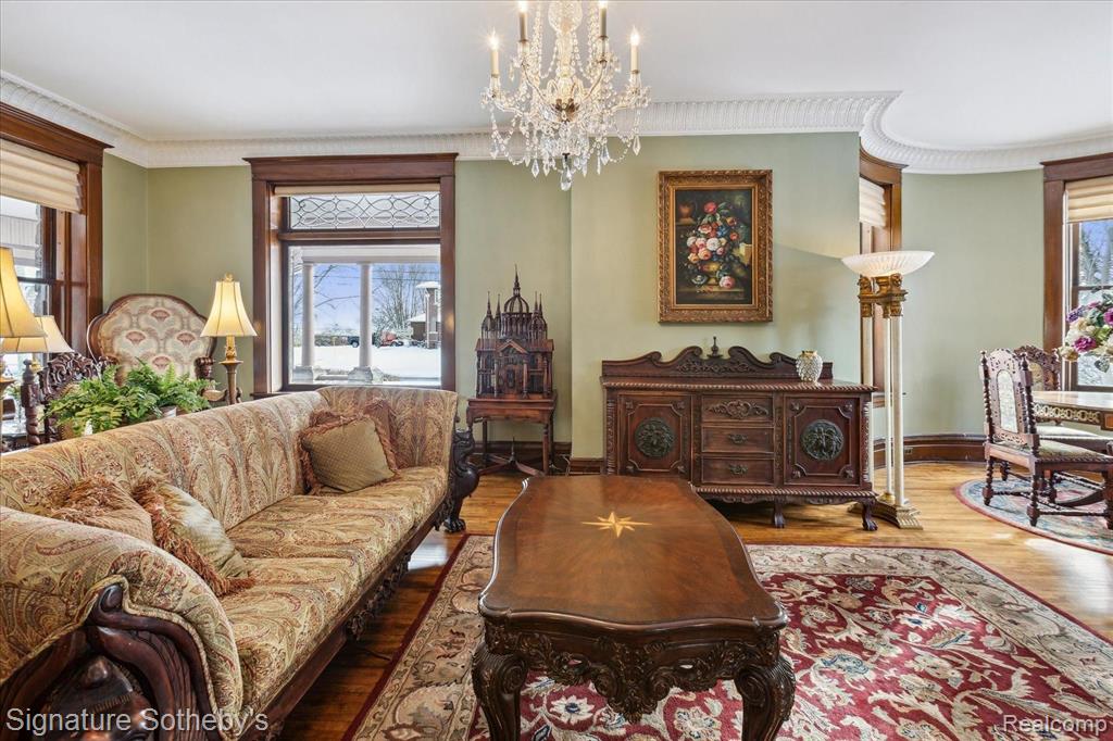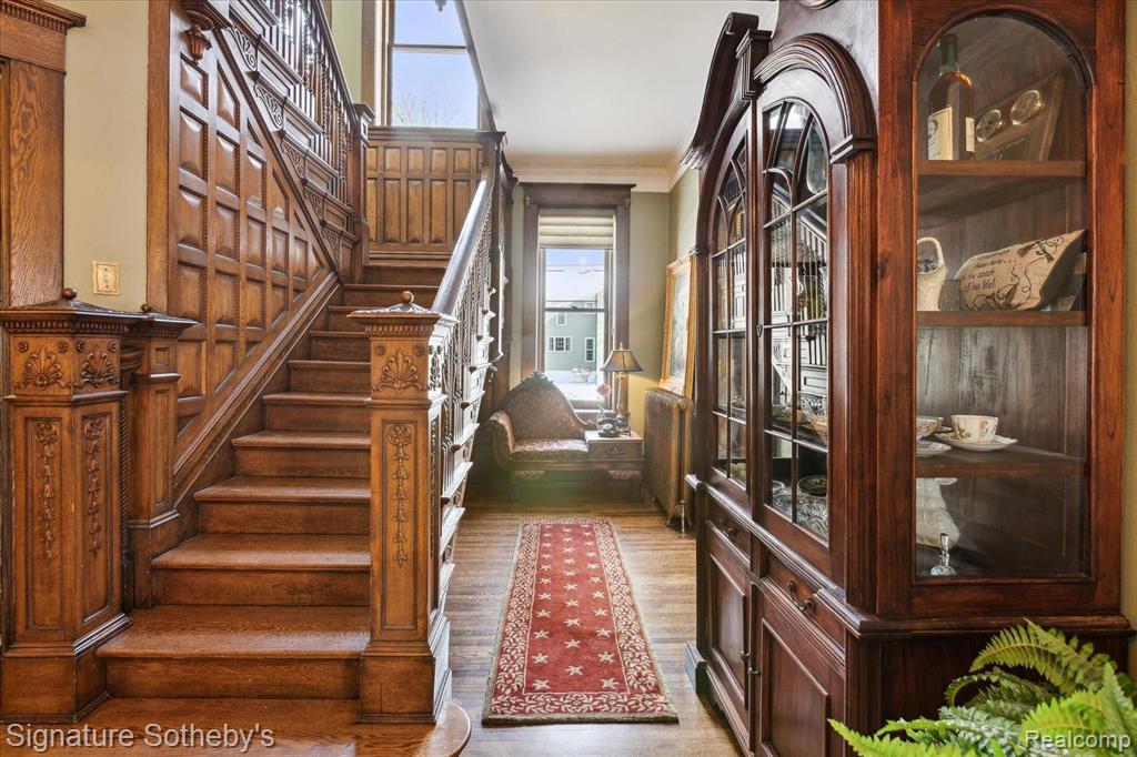 THE CASTLE, like no other! Fully furnished. This property is being sold Turnkey w/hand carved solid wood furniture, artwork, area rugs, & lamps included in sale. Extraordinary with unsurpassed artistry, prime location within the City of Alpena, Michigan w/gorgeous Lake Huron views. The Castle embodies timeless architecture w/the preservation design for present day lifestyles. Enjoy a piece of history w/this restored stunning Victorian stone home, featuring ornate woodwork, leaded glass windows, & wraparound porch. The home originally built for Charles Henry, a Michigan State Senator in 1902. The original design was based on architect H.H. Richardson’s Victorian Romanesque style. The interior design was done by Marshall Fields of Chicago, Il ,who hired an artist from New York to paint oil on canvas murals on all the dining room walls. Convenient to this location is the municipal owned waterfront boat harbor across the street featuring rental boat slips, as well as tennis courts, park, band shell, & public beach. Alpena is also home to the Thunder Bay National Marine Sanctuary & Underwater Preserve consisting of 4,300 square miles. Note the exquisite hardwood flooring thru out & leaded glass accent windows. Hand carved stairwell & cornices show the craftsmanship of that period. There are 3 unique fireplaces; in the foyer sitting room, library, & dining rm. The open flow of the great room offers a window turret area, original Waterford crystal chandelier & large entertaining space. The library with stunning carved partner desk. The dining room is off the foyer w/a beautiful hand painted oil on canvas wall mural. The kitchen is designed for contemporary living with newer cabinetry and stainless appliances. There is a breakfast area in the kitchen overlooking the elevated patio for casual outdoor dining & renovated 1st floor powder rm. Second level offers 5 bedrooms which include staged bedding. Third level is a bonus room w/plenty of extra space. BATVAI |