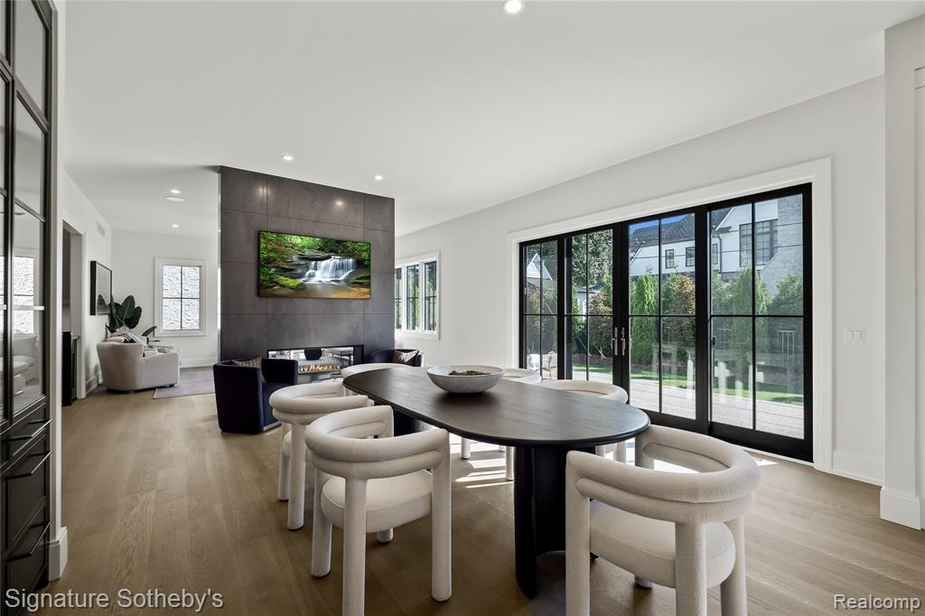 Offering 5 bedrooms, 5.2 baths, and 5,270 sq ft above grade with an addtl 2,003 sq ft of finished lower level, this Sterling Custom Homes residence combines scale with sophistication. Positioned on a .23-acre corner lot, the exterior blends stone and siding for a presence both timeless and modern. Inside, wide-plank hardwood flows through open interiors where natural light enhances layered textures and thoughtful design. Downsview cabinetry frames a chef’s kitchen appointed with Thermador appliances, integrated coffee maker, and a waterfall island topped in leathered granite. From the kitchen, a double-sided fireplace connects seamlessly to the living space, while a wet bar with waterfall counter anchors the entertaining experience. Glass sliding doors off the kitchen nook invite light and open to a landscaped yard with an aggregate patio and fire pit. A porcelain-tiled wine room complements the formal dining space, while a private office provides retreat. Upstairs, the primary suite impresses with a tray ceiling, private fireplace, expansive walk-in closet, and a spa-inspired bath featuring dual vanities, soaking tub, and steam shower. Secondary bedrooms each enjoy their own en-suite bath, creating comfort and privacy throughout. A spacious loft adds flexibility, ideal as a second office, study space, or play area. The finished lower level continues the lifestyle with hardwood flooring, a full bar, guest suite, additional bath, and a flex room ready for fitness or a golf simulator. Everyday convenience is elevated through Control4 automation, security cameras, and a heated two-car garage with epoxy flooring. A residence crafted with precision, balancing architectural presence with functional ease, designed for both grand entertaining and comfortable daily living. (Please note that the pool and modified exterior paint are not included in the base price and may be added as optional features.) |