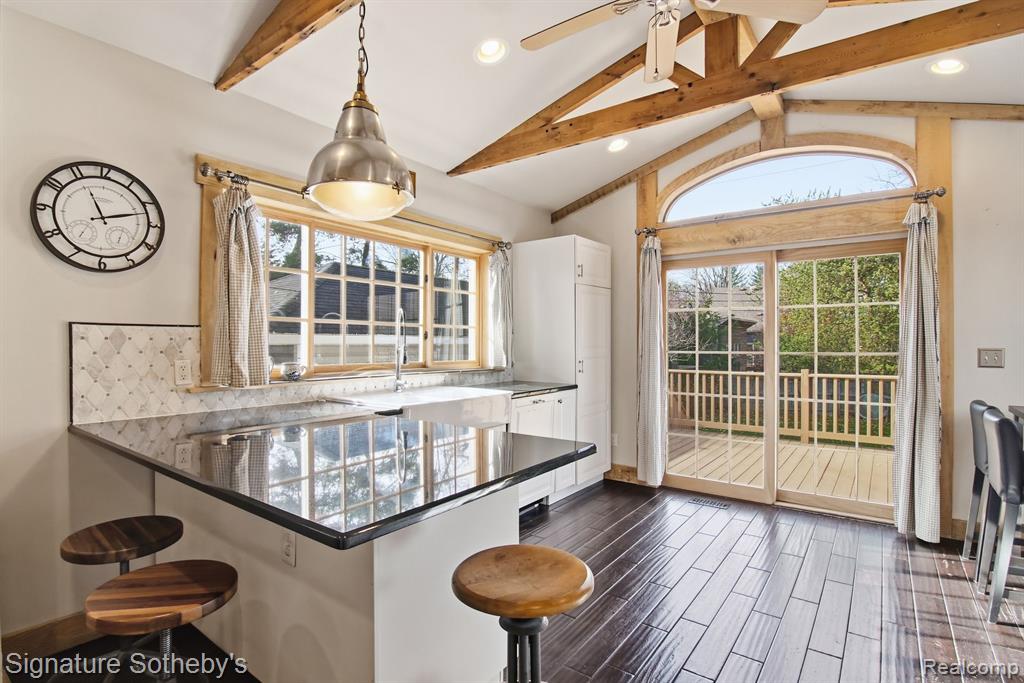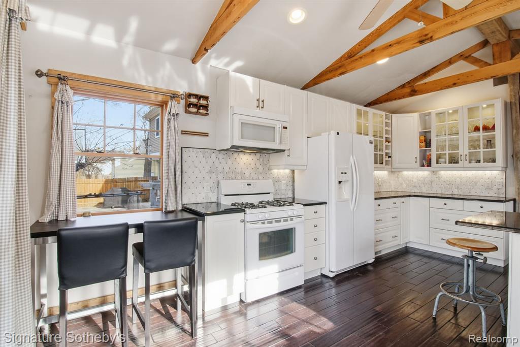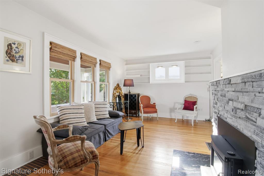 Great opportunity with this stunning 1922 Colonial Craftsman located on a quiet dead-end street, just steps from Downtown Royal Oak. This home beautifully marries historic character with a thoughtful 2014 modern addition. A welcoming covered front porch opens to a sun-filled interior featuring original hardwood flooring and timeless architectural details. The living room is highlighted by a wood burning fireplace 2022, flowing seamlessly into an inviting family room and adjacent bright office. The formal dining room with library shelving connects to the main living areas. The expansive gourmet kitchen offers white oak accents, custom cabinetry, granite counters, and a large countertop for cooking, hosting, and everyday living. The second floor offers three bedrooms and full bathroom. Outside, enjoy a generous wrap-around deck and fenced yard. The insulated garage provides versatility for a workshop, studio, or extra storage. Exceptional location close to shops, dining, school and daily conveniences. |
